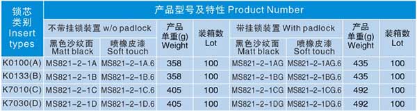 ● 材质:PA66锁体、锌合金螺母、锁芯,镀锌锁片