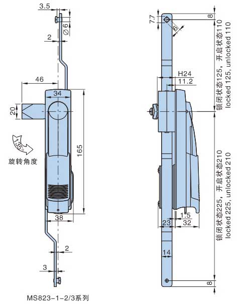 ● 材质:PA66锁体,铜转轴,镀锌锁片,镀镍传动条