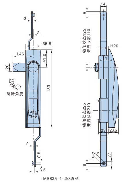 ● 材质:PA66锁体,铜转轴,镀锌锁片,镀镍传动条