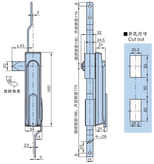 ● 材质:锌合金锁体,镀锌锁片,镀锌传动条