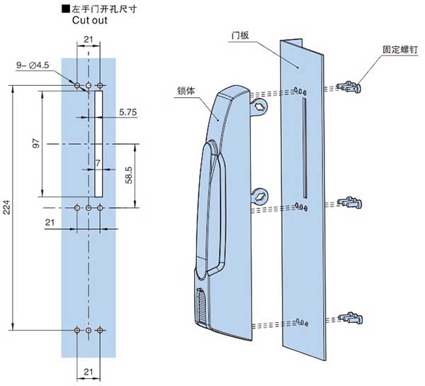 ● 材质:铝合金锁壳、PA6外壳、Pa6手柄、锌合金传动件