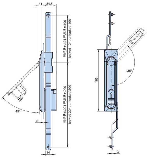● 材质:锌合金锁体、 镀镍传动条;