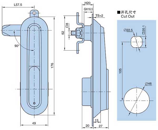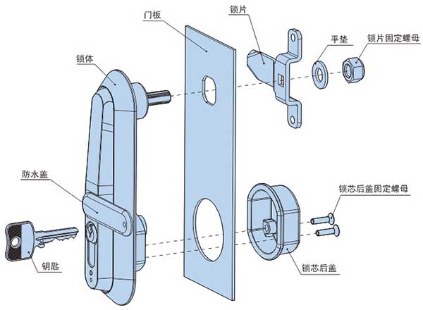 ● 材质:锌合金锁壳、 锁背 PA66转轴后盖、锁芯后盖.