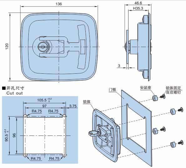 ● 材质:PA66手柄、锁壳,镀锌锁片