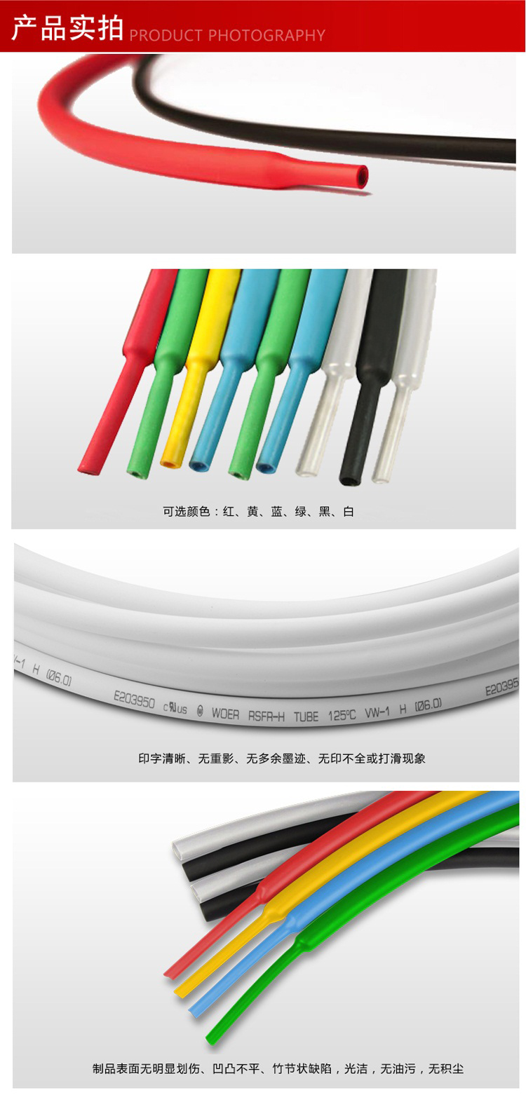 | 规格 | 收缩前尺寸(mm) | 收缩后尺寸(mm) | 标准包装 | 适用范围 | ||